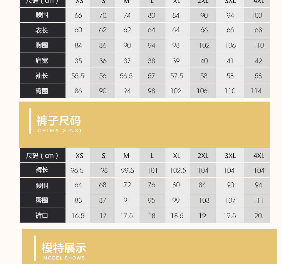 • 本產品共8個尺碼:XS、S、M、L、XL、2XL、3XL、4XL 覆蓋99.5%的人群 >>>查看尺碼表>