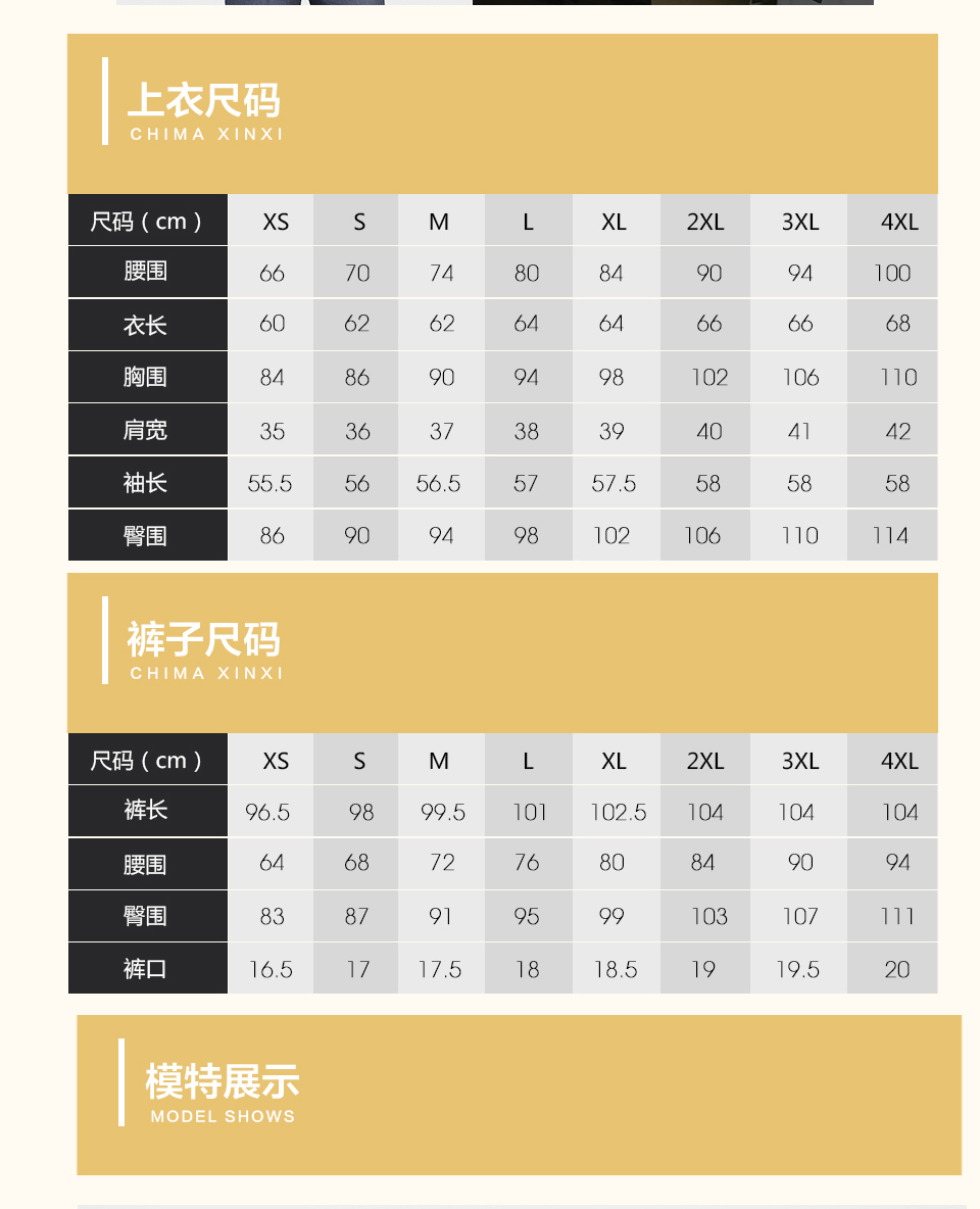 • 本產品共8個尺碼:XS、S、M、L、XL、2XL、3XL、4XL 覆蓋99.5%的人群 >>>查看尺碼表>