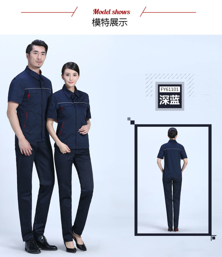 相關夏季時尚合體滌棉細斜短袖工作服FY611推薦